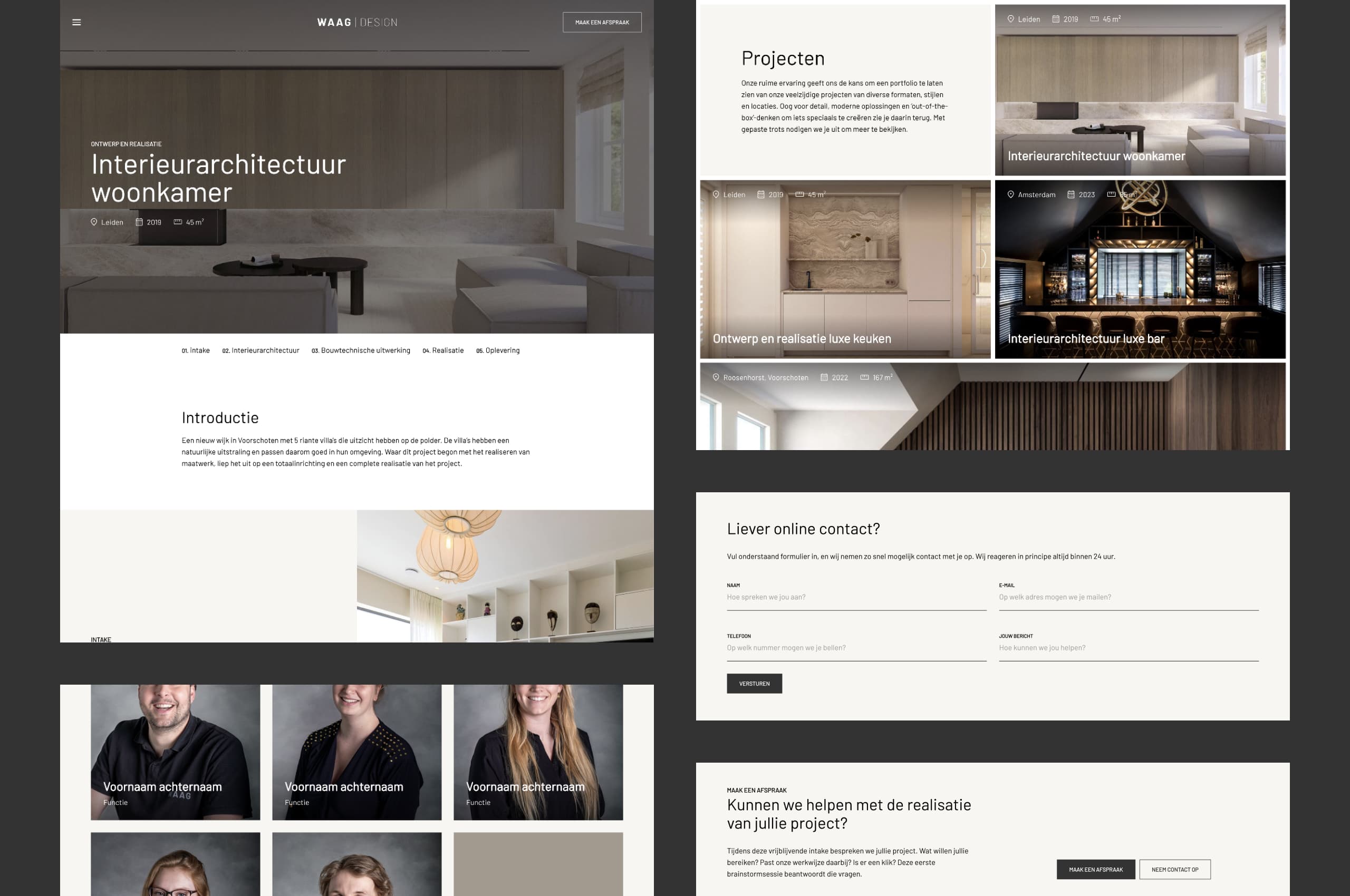 De nieuwe Waag Design-website laat prachtige maatwerk en interieurontwerpen zien met gemakkelijke navigatie en een mooie uitstraling, waardoor bezoekers eenvoudig door projecten en diensten kunnen bladeren en inspiratie kunnen opdoen.